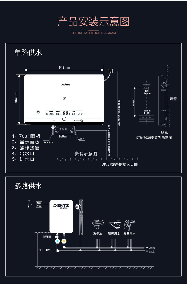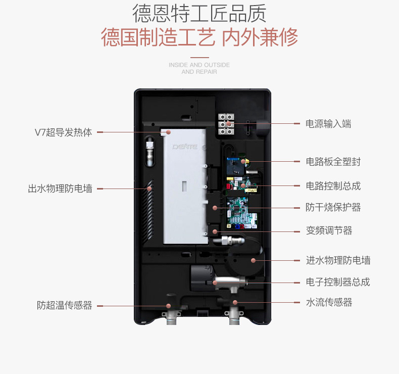 德恩特DTR/V7E308負離子發(fā)生器 家用恒溫淋浴速熱